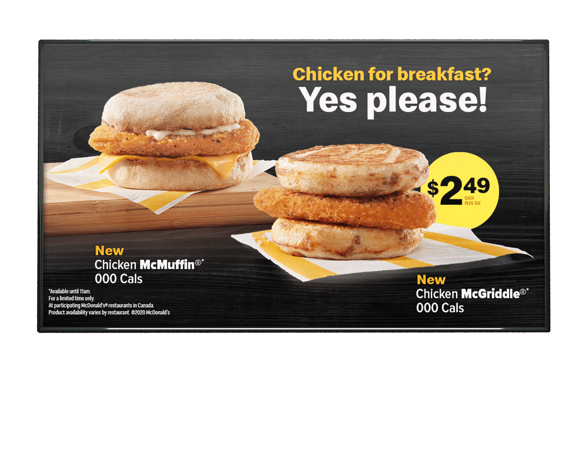 During my time at Cineplex Digital Media, I was part of an extensive team responsible for McDonald’s Canada redesign of their restaurant’s digital menu boards, drive-thru windows, and kiosks. The goal was to elevate the in-store experience through natural visuals and upstanding design.
